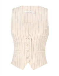 ITEM DETAILS The Tranquillity Waistcoat in Cream Pinstripe from our Spring 2024 Collection, Natura. A linen waistcoat featuring a v-neckline and buttons down the centre front. - Linen waistcoat - Buttons down front - Mock pockets each side Style Code: 1002JS243 SIZE DETAILS 0P 0 1 2 3 4 Length 48 52 52 53 53 54 Bust 76 81 86 91 96 101 Waist 67 70 116 81 86 91 This style is designed to be worn fitted This garment fits true to size Available in size 0P, suited to clients who are under 5'3"/ 160cm Model is 5'9.5"/178 cm, bust size 32C/10C and wears a size 0 Item measurements have been rounded to the nearest cm. CARE INSTRUCTIONS Main: 55% polyester 26% linen 18% viscose 1% elastane Lining: 75% viscose 25% silk Exclusive of trims Dry clean only code f (hydrocarbon) with protective bag Cool iron with protective cloth Light steam only Do not spot clean Turn garment inside out before dry cleaning Always check the garment care label for specific care instructions.