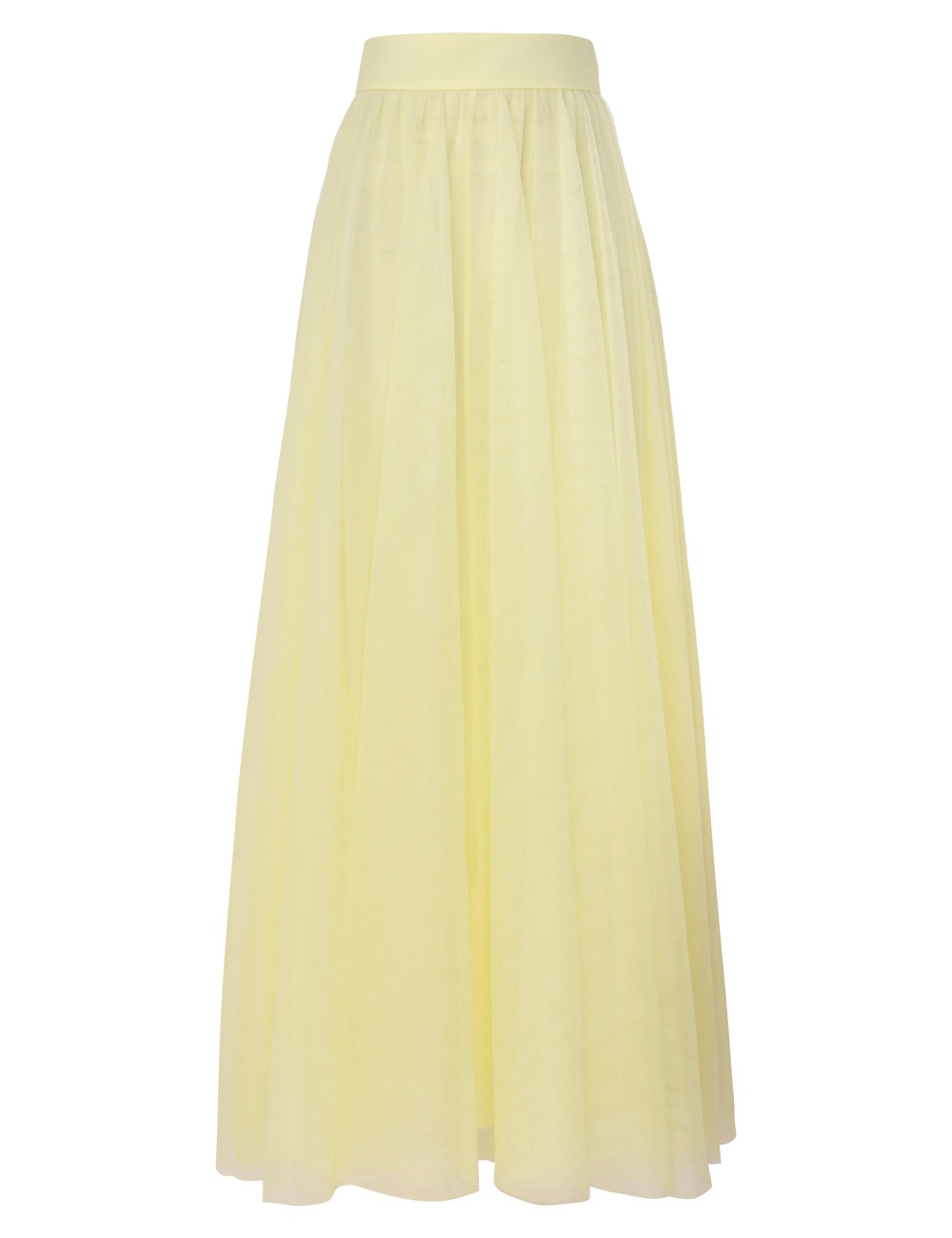 ITEM DETAILS The Tulle Skirt in Lemon from our Resort 2024 Collection, Matchmaker. A midi skirt featuring a high waist and raw hem. - Midi skirt - Layers of tulle throughout - Invisible zip at centre back - Lined Style Code: 9179SRMAT SIZE DETAILS 0P 0 1 2 3 4 Length 101 110 110 110 110 110 Waist 64 68 72 78 82 88 Fitted high waist Relaxed through hips This garment fits true to size Available in size 0P, suited to clients who are under 5'3"/ 160cm Model is 5'9.5"/178 cm, bust size 32C/10C and wears a size 0 Item measurements have been rounded to the nearest cm. CARE INSTRUCTIONS Main: 100% polyamide Exclusive of trims Dry clean only code f (hydrocarbon) with protective bag Cool iron with protective cloth Light steam only Do not spot clean Turn garment inside out before dry cleaning Always check the garment care label for specific care instructions.