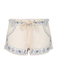 ITEM DETAILS The Wanderlust Micro Short in Blue Toile from our Resort Swim 2026 Collection. A linen mini short featuring a low waistband, functional side pockets, finished with a removable rope belt and patterned trim. - Linen short - Low-rise waist with belt loops - Removable multi-stone beaded belt - Centre front zip closure with hook and bar - Asymmetrical hem - Placement printed - Lined Style Code: 6173ARS262 SIZE DETAILS 0P 0 1 2 3 4 Length 7 8 8.5 8.5 8.5 9 Waist 28.5 30 31.5 34 35.5 38 Hip 34.5 36 38.5 40 42.5 44 Inseam 2.5 2.5 2.5 2.5 2.5 2.5 Tailored fit Light-weight, non-stretchy fabric This garment fits true to size Available in size 0P, suited to clients who are under 5'3"/ 160cm Model is 5'9.5"/178 cm, bust size 32C/10C and wears a size 0 Item measurements are in inches CARE INSTRUCTIONS Main: 100% linen; lining: 100% cotton Dry clean only code f (hydrocarbon only); Remove any detachable trims prior to dry cleaning; Cover to protect trim; Iron in low temperature with protective cloth; Light steam only; Do not spot clean Always check the label or care card for specific care instructions.