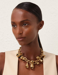 ITEM DETAILS The Whimsy Charm Necklace in Antique Gold from our Fall 2025 Collection, Hypnotic. A gold plated chain necklace featuring alternating charms and a T-bar clasp. - 14KT gold plated brass necklace - Delicate hammered charms with surface textures - Custom branded T-bar clasp closure Style Code: 5341XF25A1 SIZE DETAILS One size. CARE INSTRUCTIONS 100% brass Zimmermann jewellery is made from 14kt gold-plated brass Please remove during exercising, showering or swimming Avoid contact with perfumes, acetones, creams, and water to prevent damage or discoloration Clean gently with a soft, lint-free cloth. Avoid cleaning products Store in a cool, dry place, away from direct sunlight and heat Always check the label or care card for specific care instructions.