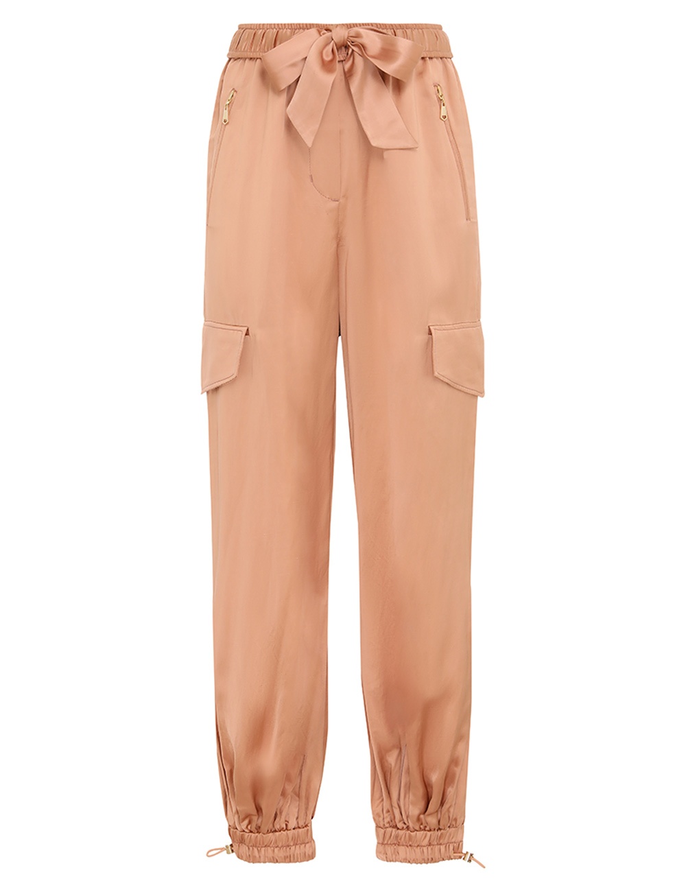ITEM DETAILS The Wonderland Harem Cargo Pant in Sandstone from our Spring 2023 Collection, Wonderland. A slouchy satin pant featuring an elastic waist and cuffs and pockets throughout. - Satin harem pant - High waisted - Elastic waist with ribbon drawcord - Adjustable drawcord ankle cuffs - Topstitching throughout Style Code: 6135PWON STYLING Style the Wonderland Harem Cargo Pant with the Wonderland Relaxed Jacket and Twisted Towel Sneaker for an off-duty look. SIZE DETAILS 0P 0 1 2 3 Length 96 96 104 105 106 Waist 66 68 74 80 84 Hip 98 102 108 112 118 This garment fits true to size, we recommend you select your normal size. Relaxed style with an elasticated waist for an easy fit. Available in size 0P, specially designed with petite proportions that are suited to clients who are under 5'3""/ 160cm. Our model is 5'9.5"" / 178 cm, bust size 32C/10C and is wearing a size 0. CARE INSTRUCTIONS Main: 76% viscose 24% linen Lining: 73% viscose 27% silk Exclusive of trims Dry clean only code f with protective bag Cool iron with protective cloth Light steam only Do not spot clean Cover and protect hardware Turn garment inside out before dry cleaning Always check the garment care label for specific care instructions.