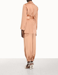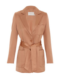 ITEM DETAILS The Wonderland Relaxed Jacket in Sandstone from our Spring 2023 Collection, Wonderland. A long line satin jacket featuring single breasted closure and a self tie waist belt. - Relaxed jacket - Patch pockets at chest and hips - Single breasted closure - Topstitching throughout - Lined - Removable waist tie Style Code: 6132JWON STYLING Style the Wonderland Relaxed Jacket with the Wonderland Harem Cargo Pant, Classic Small Hoops and Embellished Sandal 85 for a look that will take you from day to night. Wear this style with the Rib Scoop Neck Tank, Embellished Sandal 85, Crystal Tarot Drop Earrings and Wonderland Harem Cargo Pant by ZIMMERMANN SIZE DETAILS 0P 0 1 2 3 Length 71 71 77 78 79 Bust 94 100 104 110 116 Waist 92 96 100 106 112 Sleeve 57 61 61 62 63 This garment fits true to size, we recommend you select your normal size. Relaxed style with a removable waist tie for an adjustable fit. Available in size 0P, specially designed with petite proportions that are suited to clients who are under 5'3""/ 160cm. Our model is 5'9.5"" / 178 cm, bust size 32C/10C and is wearing a size 0. CARE INSTRUCTIONS Main: 76% viscose 24% linen Lining: 73% viscose 27% silk Exclusive of trims Remove belt before dry cleaning Dry clean only code f with protective bag Cool iron with protective cloth Light steam only Do not spot clean Cover and protect hardware Turn garment inside out before dry cleaning Always check the garment care label for specific care instructions.