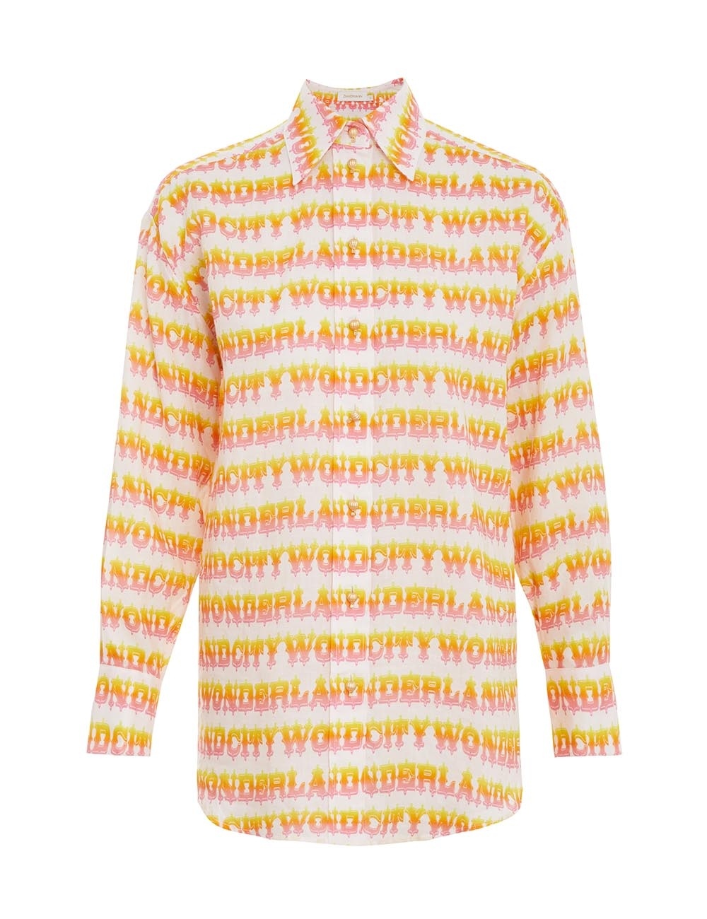 ITEM DETAILS The Wonderland Relaxed Shirt in Wonderland Print from our Spring 2023 Collection, Wonderland. A relaxed fit ramie shirt featuring a classic collar with long sleeves and buttons down the centre front. - Ramie shirt - Relaxed fit - Buttons down the centre front - Classic collar - Long sleeves Style Code: 6682TWON STYLING Style the Wonderland Relaxed Shirt with the Wonderland Relaxed Cargo Pant and Twisted Towel Slide for a fun daytime look. Wear this style with the Chunky Wavy Sandal, Shooting Star Fireworks Ring and Wonderland Relaxed Cargo Pant by ZIMMERMANN SIZE DETAILS 0P 0 1 2 3 Length 71 71 78 78 79 Bust 142 118 124 128 134 Sleeve 52 55 55 55 55 This garment fits true to size, we recommend you select your normal size. Relaxed fit. Available in size 0P, specially designed with petite proportions that are suited to clients who are under 5'3""/ 160cm. Our model is 5'9.5"" / 178 cm, bust size 32C/10C and is wearing a size 0. CARE INSTRUCTIONS 100% ramie Exclusive of trims Dry clean only code f with protective bag Cool iron with protective cloth Light steam only Do not spot clean Cover and protect hardware Turn garment inside out before dry cleaning Always check the garment care label for specific care instructions.