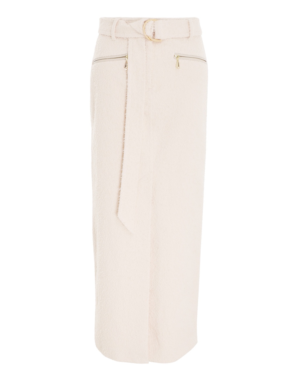 ITEM DETAILS The Wonderland Textured Skirt in Cream from our Spring 2023 Collection, Wonderland. A midi skirt constructed from Reggiani towelling featuring leather contrast trims. - Midi skirt - Italian Reggiani towelling - Front zip pockets with leather contrast - Centre front split - Removable D-ring belt - Lined Style Code: 6434SWON STYLING The Wonderland Textured Skirt appeared in look 12 of the Spring 2023 Runway. Style the skirt with the Wonderland Textured Gilet, Twisted Towel Slingback and Tangled Collage Earrings to complete the runway look. Wear this style with the Twisted Towel Slingback 85, Pearl Rope Lariat Necklace and Wonderland Doily Bralette by ZIMMERMANN SIZE DETAILS 0P 0 1 2 3 Length 89 89 98 98 98 Waist 66 70 74 80 86 Hip 90 96 100 106 110 This garment fits true to size, we recommend you select your normal size. Fitted through the waist, slim fit through the leg. Available in size 0P, specially designed with petite proportions that are suited to clients who are under 5'3""/ 160cm. Our model is 5'9.5"" / 178 cm, bust size 32C/10C and is wearing a size 0. CARE INSTRUCTIONS Main: 85% cotton 14% polyamide 1% elastane Contrast: 100% lamb leather Lining: 92% viscose 8% elastane Exclusive of trims Clean professionally by a specialist leather and suede expert Cover and protect hardware Do not dry clean Do not wash or spot clean Do not bleach or tumble dry Cool iron with protective cloth Light steam only Always check the garment care label for specific care instructions.