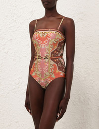 ITEM DETAILS The Wylie Knit Tri Bikini in Rust Multi from our Resort Swim 2025 Collection. A lycra bandeau one piece featuring a shelf bra, boning in the side seams and a removable chain trim belt. - Lycra bandeau one piece - Shelf bra - Placement print - Gripper elastic front neck - Boning inserted at side seam Style Code: 1863WRS251 SIZE DETAILS This garment fits true to size Model is 5'10.5"/179 cm, bust size 34C/12C and wears a size 0 CARE INSTRUCTIONS Main: 80% polyamide, 20% elastane, lining: 92% polyamide, 8% elastane Do not roll up when wet; Rinse thoroughly after use; Remove belts, detachable trims and accessories prior to washing; Cold hand wash separately with mild detergent, avoid fabric softener; Dry in shade; do not bleach or iron; Do not tumble dry; Do not dry clean; Light colours may be transparent when wet; Avoid contact with suntan lotions, oils and rough surfaces; Avoid high temperature pools and spas treated with harsh chemicals; Always check the label or care card for specific care instructions.