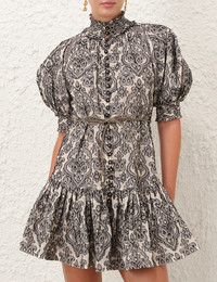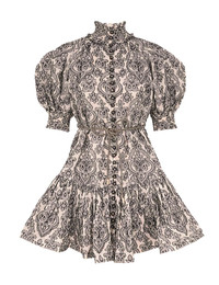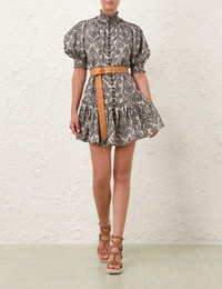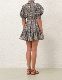 ITEM DETAILS The Wylie Lantern Mini Dress in Black from our Resort Swim 2025 Collection. A short sleeve cotton mini dress featuring a shirred neck and cuffs, raffia buttons down the centre front and a removable raffia belt. - Cotton mini dress - Shirred neckline and cuffs - Raffia buttons down the centre front - Centre back zip closure - Removable raffia belt - Drop waist Style Code: 1752DRS251 SIZE DETAILS 0P 0 1 2 3 Length 32 34 34.5 35 35.5 Bust 43.5 45.5 47 49 51 Waist 45.5 47.5 49.5 51.5 53.5 Sleeve 17 17.5 17.5 18 18.5 Relaxed fit This garment fits true to size Available in size 0P, suited to clients who are under 5'3"/ 160cm Model is 5'9.5"/178 cm, bust size 32C/10C and wears a size 0 Item measurements are in inches CARE INSTRUCTIONS Main: 100% cotton Dry clean code f (hydrocarbon only), inside out in a protective bag; Remove detachable trims and accessories prior to cleaning; Cover to protect hardware; Cool iron with protective cloth; Do not spot clean; Always check the label or care card for specific care instructions.