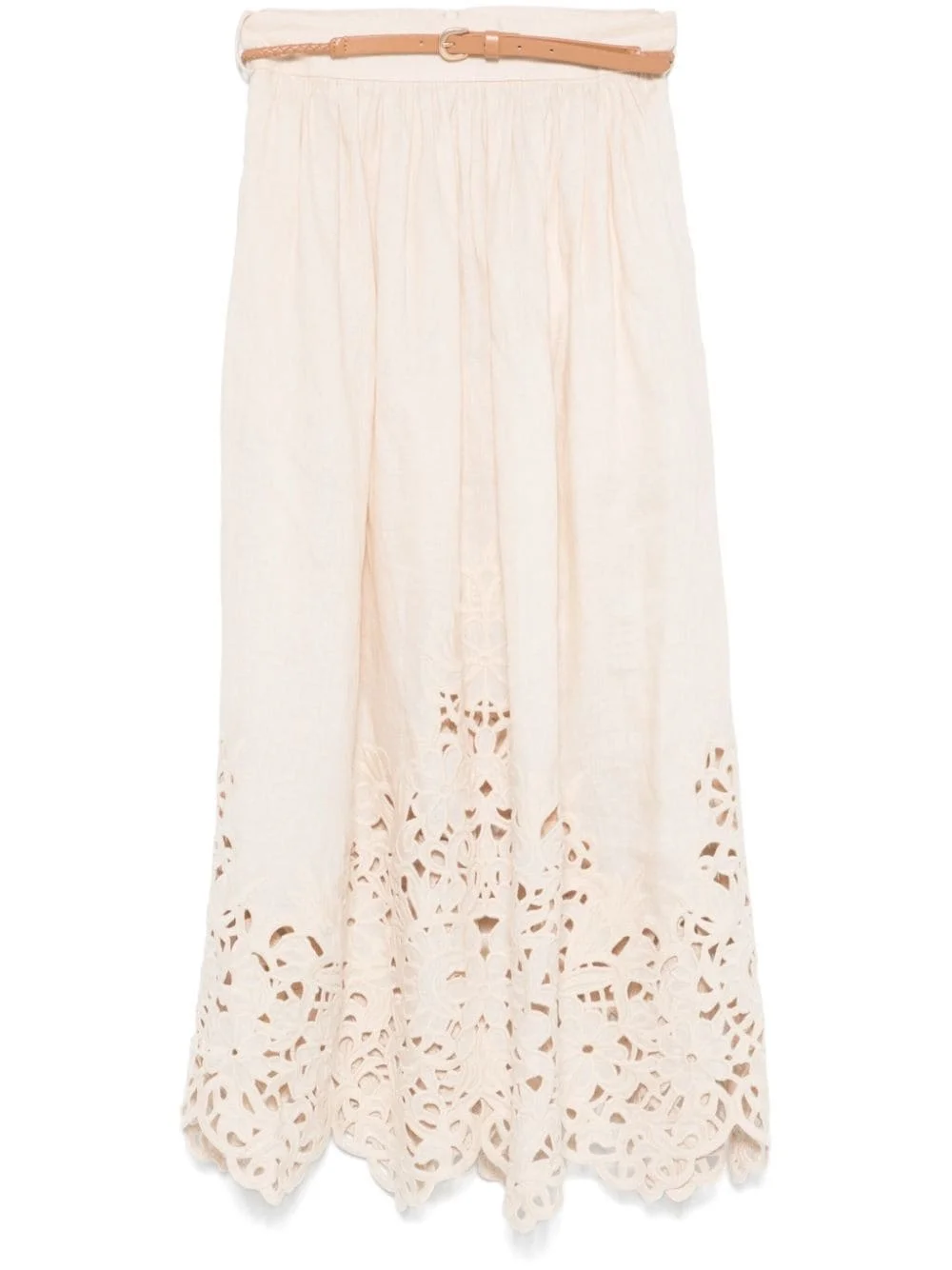Wylie midi skirt Highlights - Light beige - Linen - Slub texture - Concealed rear zip fastening - Mid-rise - Belt loops - Detachable waist belt - Pleat detailing - Broderie anglaise - Partial lining - Scallop hem - Mid-length Imported Composition Lining: Cotton 100% Outer: Polyester 100%, Linen/Flax 100% SIZE & FIT Model measurements Height 5 ft 11 in(1.8 m) Bust/Chest 32.67 in(83 cm) Hips 36.22 in(92 cm) Waist 24.4 in(62 cm) FittingInformation This midi-length skirt is intended to be worn high on the waist The belt offers adjustability for fitted preferences Made from a midweight non-stretch fabric Washing instructions Dry Clean Only