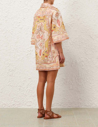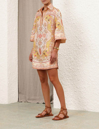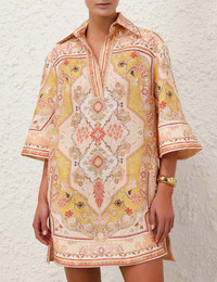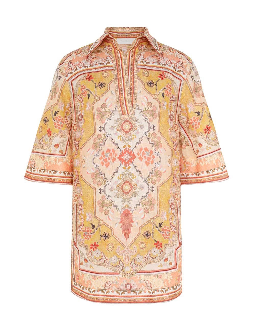 ITEM DETAILS The Wylie Tunic Dress in Mustard Multi from our Resort Swim 2025 Collection. A linen tunic mini dress featuring wide sleeves, a concealed front centre placket and placement print throughout. - Linen mini dress - Side seam pockets - Classic collar - Deep V-neckline - Topstitching throughout Style Code: 0712DRS251 SIZE DETAILS 0P 0 1 2 3 4 Length 32.5 34.5 34.5 35 36 36.5 Bust 42 44 46 48 50 52 Sleeve 15 15.5 15.5 15.5 15.5 15.5 Relaxed fit throughout This garment fits true to size Available in size 0P, suited to clients who are under 5'3"/ 160cm Model is 5'9.5"/178 cm, bust size 32C/10C and wears a size 0 Item measurements are in inches CARE INSTRUCTIONS Main: 100% linen, lining: 100% linen Dry clean code f (hydrocarbon only), inside out in a protective bag; Remove detachable trims and accessories prior to cleaning; Cover to protect hardware; Cool iron with protective cloth; Do not spot clean; Always check the label or care card for specific care instructions.