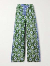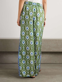 EDITORS'NOTES Zimmermann’s ‘Wylie’ pants are made from silk printed with a traditional Ikat-inspired design. Perfect for tropical vacations, they're topped with an elasticated waist threaded with ribbon drawstrings and have wide legs. Lower-Impact Materials. This product is made using at least 50% lower-impact materials or ingredients. Find out more about our NET SUSTAIN criteria here. SIZE & FIT Model measurements: - Fits true to size, take your normal size - Mid-rise, cut for a wide-leg fit - Drawstring waist, designed for a flexible fit - Lightweight, non-stretchy fabric - Model is 180cm/ 5’11” and is wearing the designer's size 1 - Bust: 81cm/ 32" - Waist: 63cm/ 25" - Hip: 91cm/ 36" DETAILS & CARE - Blue, green and white silk - Pull on - 100% silk - Dry clean