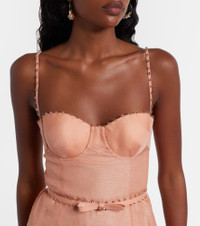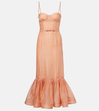 Part of Zimmermann's Hypnotic collection, this gown is sure to make a lasting impression at any event. The design is made from a linen and silk blend with subtle embellishments and a pleated fishtail hem for volume. Product Details - Material: 53% linen, 47% silk - Care instructions: dry clean - Made in China - Designer color name: Peach - Item color: pink - Closure: zipped back - Underwired cups - Padded cups - Detachable belt - Fully lined - Item number: P01101536 Size & Fit - True to size - Elasticated top - Cinched waist - Non-stretchy fabric - Padded, underwired top - The model seen in the picture is 178cm-5'10" and wearing a size 0