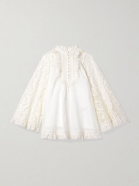 Zimmermann's blouse has an easy, bohemian feel. Made from breathable ramie, it has a pintucked bib with crocheted panels and breezy lace sleeves. Size & Fit - 00 (petite) = UK 6/ US 2/ FR 34 (under 5’3”/ 160cm) - 0 = UK 8/ US 4/ FR 36 - 1 = UK 10/ US 6/ FR 38 - 2 = UK 12/ US 8/ FR 40 - 3 = UK 14/ US 10/ FR 42 - 4 = UK 16/ US 12/ FR 44 - Fits true to size, take your normal size - Designed for a relaxed fit - Lightweight, non-stretchy fabric - Model is 177cm/ 5'10" and is wearing the designer's size 1 Model measurements: - Bust: 77cm/ 30.5" - Waist: 61cm/ 24" - Hip: 92cm/ 36" Details & Care - Ivory ramie, lace and crochet - Tie-fastening keyhole at front - 100% ramie