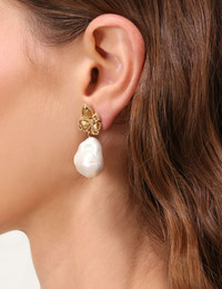 ITEM DETAILS The Zimmermann Bloom Earrings in Gold/Pearl from our Resort 2025 Collection, Crush. A gold plated drop earring featuring baroque pearls. - 12K gold plated brass - Baroque pearls - Stud post back - Sold as a pair - For hygiene reasons, earrings are final sale and cannot be returned Style Code: 2384XR25A1 SIZE DETAILS Suitable for pierced ears. Sold as a pair. CARE INSTRUCTIONS 80% brass 15% baroque pearl Zimmermann jewellery is produced in 12kt gold-plated brass. Please remove when exercising, showering or swimming. Avoid contact with perfumes, acetones, hand and body creams and water as they may cause damage or discolouring. We have taken great care in sourcing these freshwater pearls for their natural beauty. Any irregularity is inherent in its natural and should not be considered a flaw. There will be some variance from piece to piece. Clean your jewellery carefully with a soft, non-abrasive, lint-free cloth to remove dirt and dust. Do not use cleaning products. Store in a cool, dry place to prevent damage. Keep away from direct sunlight and heat. Always check the label or care card for specific care instructions.