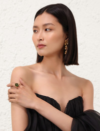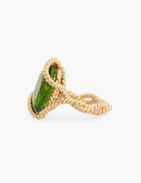 ITEM DETAILS The Zimmermann Bloom Oval Ring in Gold/Emerald from our Resort 2025 Collection, Crush. A gold plated ring featuring a statement stone with an intricate cast setting. - 12KT gold plated - Custom cut glass stone - Rope look detailing Style Code: 2532XR25A1 SIZE DETAILS Ring diameter: Size 13: 17mm Size 15: 18mm Size 18: 19mm CARE INSTRUCTIONS 80% brass 20% glass Zimmermann jewellery is produced in 12kt gold-plated brass. Please remove when exercising, showering or swimming. Avoid contact with perfumes, acetones, hand and body creams and water as they may cause damage or discolouring. We have taken great care in sourcing these freshwater pearls for their natural beauty. Any irregularity is inherent in its natural and should not be considered a flaw. There will be some variance from piece to piece. Clean your jewellery carefully with a soft, non-abrasive, lint-free cloth to remove dirt and dust. Do not use cleaning products. Store in a cool, dry place to prevent damage. Keep away from direct sunlight and heat. Always check the label or care card for specific care instructions.