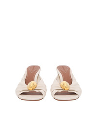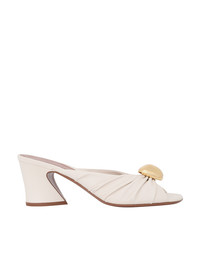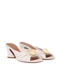 ITEM DETAILS The Zimmermann Gleam Mule 65 in Vanilla from our Resort Swim 2025 Collection. A leather mule featuring heavy gathering at the front shoe with a statement pebble hardware design. - Leather mule - Made in Italy - Soft square toe - Pebble detail at front shoe - 65mm block crescent heel Style Code: 1984FR25A2 SIZE DETAILS This shoe fits true to size. CARE INSTRUCTIONS Main: 100% leather, lining: 100% leather, outsole-suola: 100% leather Leather care:; This item was handcrafted using genuine leather. Leather can alter or stain if in contact with humidity or atmospheric agents. Marks or irregularities in natural hides can appear in even the most luxurious skins. These are naturally occurring features and should not be thought of as imperfections. On occasion leather can stain clothing or other objects it comes into contact with. To maintain in best condition, avoid direct exposure to light, heat, water, oils, perfume and cosmetics. Store at room temperature in original dust bag. Always check the label or care card for specific care instructions.