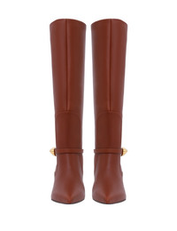 ITEM DETAILS The Zimmermann Harlow Boot 65 in Tan from our Fall 2024 Collection, In Illustration. A leather knee-high boot featuring a gold pebble detail on the ankle strap and a stiletto heel. - Leather knee-high boot - Made in Italy - Slip on style - Pointed toe - 65mm stiletto heel - Product cannot be delivered in Signature packaging Style Code: 0144FF24 SIZE DETAILS This shoe fits true to size. CARE INSTRUCTIONS Main: 100% leather Sock lining-sottopiede: 100% leather Leather care: This item was handcrafted using genuine leather. Leather can alter or stain if in contact with humidity or atmospheric agents. Marks or irregularities in natural hides can appear in even the most luxurious skins. These are naturally occurring features and should not be thought of as imperfections. On occasion leather can stain clothing or other objects it comes into contact with. To maintain in best condition, avoid direct exposure to light, heat, water, oils, perfume and cosmetics. Store at room temperature in original dust bag. Always check the care card for specific care instructions.