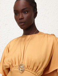 ITEM DETAILS The Zimmermann Muse Pendant in Gold from our Fall 2024 Collection, In Illustration. A gold plated chain necklace featuring white cubic zirconia and a custom T-bar clasp. - 12K gold plated brass - White cubic zirconia stones - Custom T-bar clasp Style Code: 1164XF24 SIZE DETAILS One size. CARE INSTRUCTIONS 80% brass 20% zircon Jewellery care: Zimmermann jewellery is produced in 12kt gold-plated brass. Please remove when exercising, showering or swimming. Avoid contact with perfumes, acetones, hand and body creams and water as they may cause damage or discolouring. Clean your jewellery carefully with a soft, non-abrasive, lint-free cloth to remove dirt and dust. Do not use cleaning products. Store in a cool, dry place to prevent damage. Keep away from direct sunlight and heat. Always check the care card for specific care instructions.