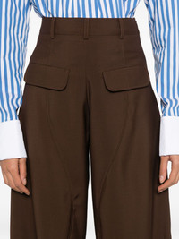 panelled pocket trousers Highlights - Brown - Panelled design - Rear flap pockets - Belt loops - Concealed fastening Imported Composition Wool 100% SIZE & FIT Model measurements Height 5 ft 9 in(1.76 m) Bust/Chest 31.88 in(81 cm) Hips 35.43 in(90 cm) Waist 24.8 in(63 cm) Washing instructions Dry Clean Only