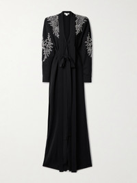 Belted Tie-neck Embellished Crepe Gown