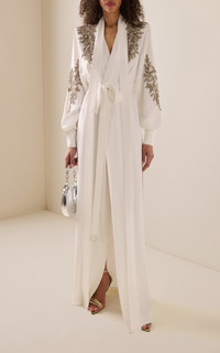 At Zuhair Murad, a thousand hours of devoted labor—sometimes more—go into the making of each red carpet-ready dress. Hand-beaded, this exquisite evening coat is crafted from structured cady. Finished with sash detailing and a back vent PRODUCT DETAILS - Pre-Fall '25 - Concealed zip fastening along back - Composition: 90% Polyester, 10% Elastane; Lining: 100% Silk - Dry clean only - Imported SIZE & FIT - Our model is wearing a size FR 34 - Model is 5'11" with a 30" bust, 24" waist, and 34" hip - Designed for a slim fit