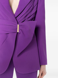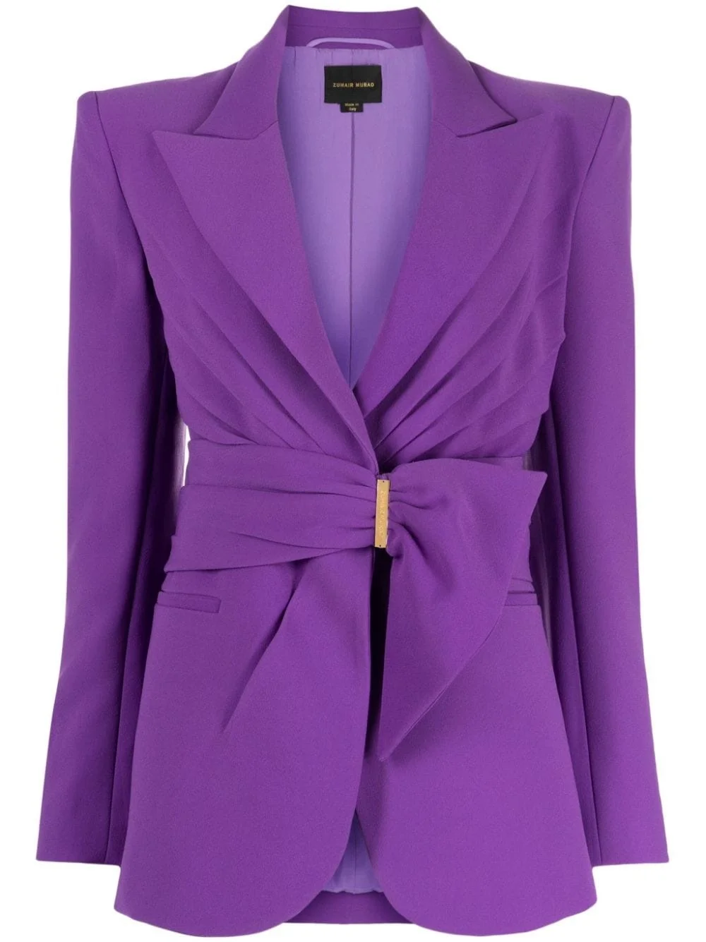 gathered belted blazer Highlights - Purple - Notched lapels - V-neck - Gold-tone logo plaque - Gathered detailing - Belted waist - Two front welt pockets - Long sleeves - Straight hem Made in Italy Composition Outer: Polyester 100% Lining: Polyester 100% SIZE & FIT Model measurements Height 5 ft 9 in(1.75 m) Bust/Chest 31.88 in(81 cm) Hips 35.03 in(89 cm) Waist 23.22 in(59 cm) FittingInformation Designed for a slim fit that sits just away from the body offering a close yet comfortable fit The internal shoulder pads offer a structured shape Made from a midweight non-stretch fabric This piece fits true to size – take your usual size Washing instructions Dry Clean Only