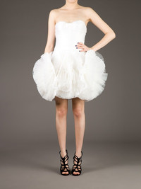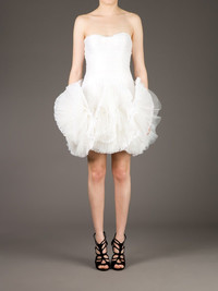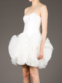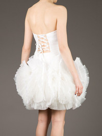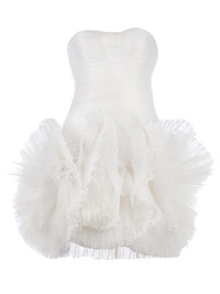 pleated strapless mini dress White silk blend strapless mini dress from Zuhair Murad featuring a pleated slim fit bodice, a classic lace up corset fastening to the rear, a knotted detail at the chest and an oversize pleated ruffled skirt. Imported Composition Silk 50%, Polyamide 50% Washing instructions Dry Clean Only