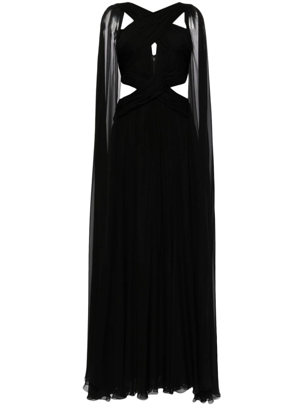 silk-chiffon cape gown Highlights - Black - Silk - Chiffon - Draped design - Cape design - Halterneck - Keyhole neck - Rear zip fastening - Cut-out detailing - Flared skirt - Floor-length - Asymmetric hem Made in Italy Composition Silk 100%
