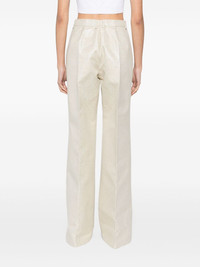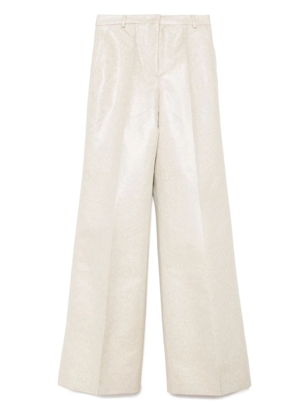 tweed trousers Highlights - Beige - Concealed front button, hook and zip fastening - Two side slash pockets - Belt loops Made in Italy Composition Lining: Polyester 100% Outer: Polyester 52%, Cotton 48% SIZE & FIT Model measurements Height 5 ft 10 in(1.77 m) Bust/Chest 31.49 in(80 cm) Hips 35.43 in(90 cm) Waist 25.19 in(64 cm) FittingInformation Designed with a wide-leg cut, these trousers allow for a close fit at the waist and offer a loose and roomy fit over the leg Made from a midweight non-stretch fabric