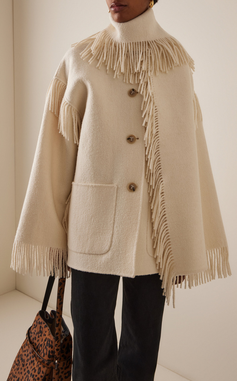 Fringed Wool Scarf Jacket ivory