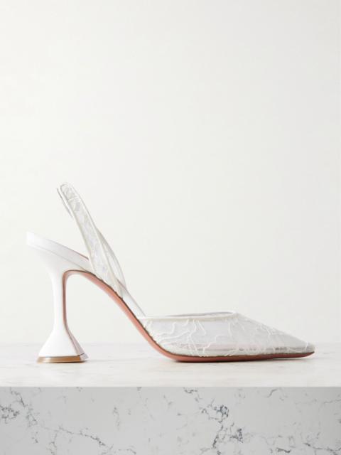 Holli lace and leather slingback pumps Ivory