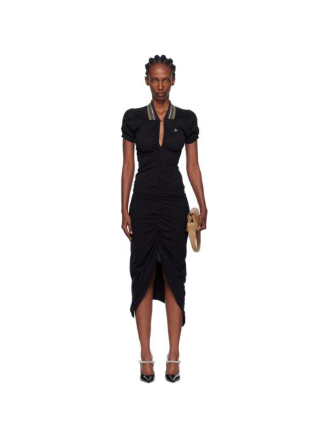 NAVY ASYMMETRICAL LONG DRESS IN JERSEY