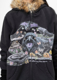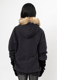 BLACK DOUBLET FURRY COLLAR ZIP-UP HOODIE