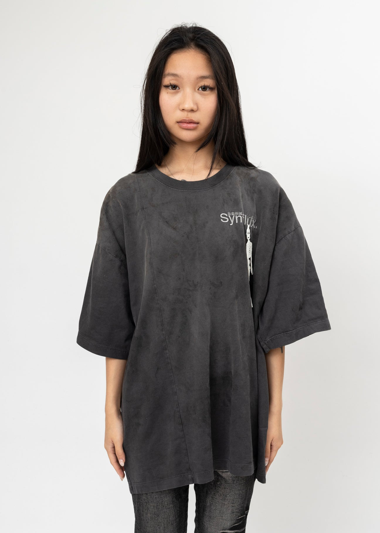 Embroiled skull with crystal eyes stitched on chest Distressed black color Multiple panel stitched Loose fit 100% Cotton Made in Japan Model is wearing a size M Model is 5'6" (168 cm), 98 pounds (44kg), usually wears S in tops. A size 25 in denim and S in trousers. Size 7 in shoe size. *FINAL SALE*