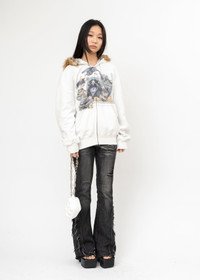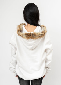 IVORY DOUBLET FURRY COLLAR ZIP-UP HOODIE
