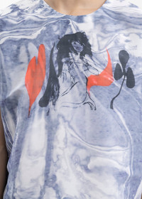 Mirage printed T-shirt in navy blue, from Doublet. Features a polyester and nylon-blend moire base in blue and white. Complete with a logo print centered across the chest and all-over mirage graphic detailing. Oversized Fit 73% Polyester, 27% Nylon Made in Japan Model is wearing a size S Model is 6’3 (189 cm), 140 pounds (68 kg), usually wears M in tops. A size 30 in denim and 48 in trousers. Size 10 in shoes.