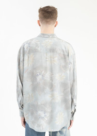 Twisted shirt in pale blue, from Magliano. Features a relaxed construction with dropped shoulders, a spread collar, buttoned closure, and a tonal all-over print. Finished with tonal stitching, buttoned cuffs, and a shirttail hem. Oversized Fit 100% Viscose Made in Italy Model is wearing a size M Model is 6'1 (185cm), 159 pounds (72 kg), usually wears S in tops. A size 30 in denim and 46 trousers. Size 11 in shoes.