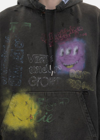 Bleached hoodie in black, from Mihara Yasuhiro. Features an oversized paneled construction with dropped sleeves, multicoloured graphic prints, and logo patch detailing at the left hem and hood. Finished with rib-knit cuffs and hem, and tonal stitching. Oversized Fit 100% Cotton Imported Model is wearing a size 46 Model is 6’ (183 cm), 125 pounds (56 kg), usually wears M in tops. A size 29 in denim and 46 in trousers. Size 10 in shoes.