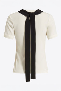 The Adwa T-Shirt in white is made from soft stretch jersey for a close, body-hugging fit. It has short sleeves, a scoop neckline, and a contrasting black ribbon with double-stitched borders tied at the nape of the neck, adding subtle detail to a classic design. Also availbale in yellow and black. MORE DETAILS Designed for a slim fit. The model is 5'9.5" (176cm) and wears a UK 8. - Outer: Viscose 97% Elastane 3% - Care: Cool wash or dry clean - Made in United Kingdom Style number: T-376-SS25-02