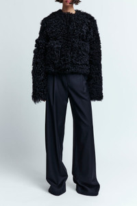 The Bia Coat is a collarless shearling coat with hidden hook fastenings. It features two pockets at the front and is designed to fit close to the body. It falls just below the waist and is also available in green MORE DETAILS Designed for a regular fit. The model is 5'10.5" (178cm) and wears a UK 8. - Outer: 100% Lamb Shearling - Lining: 100% Viscose - Care: Specialist dry clean only - Made in United Kingdom Style number: J-104-SS25-1