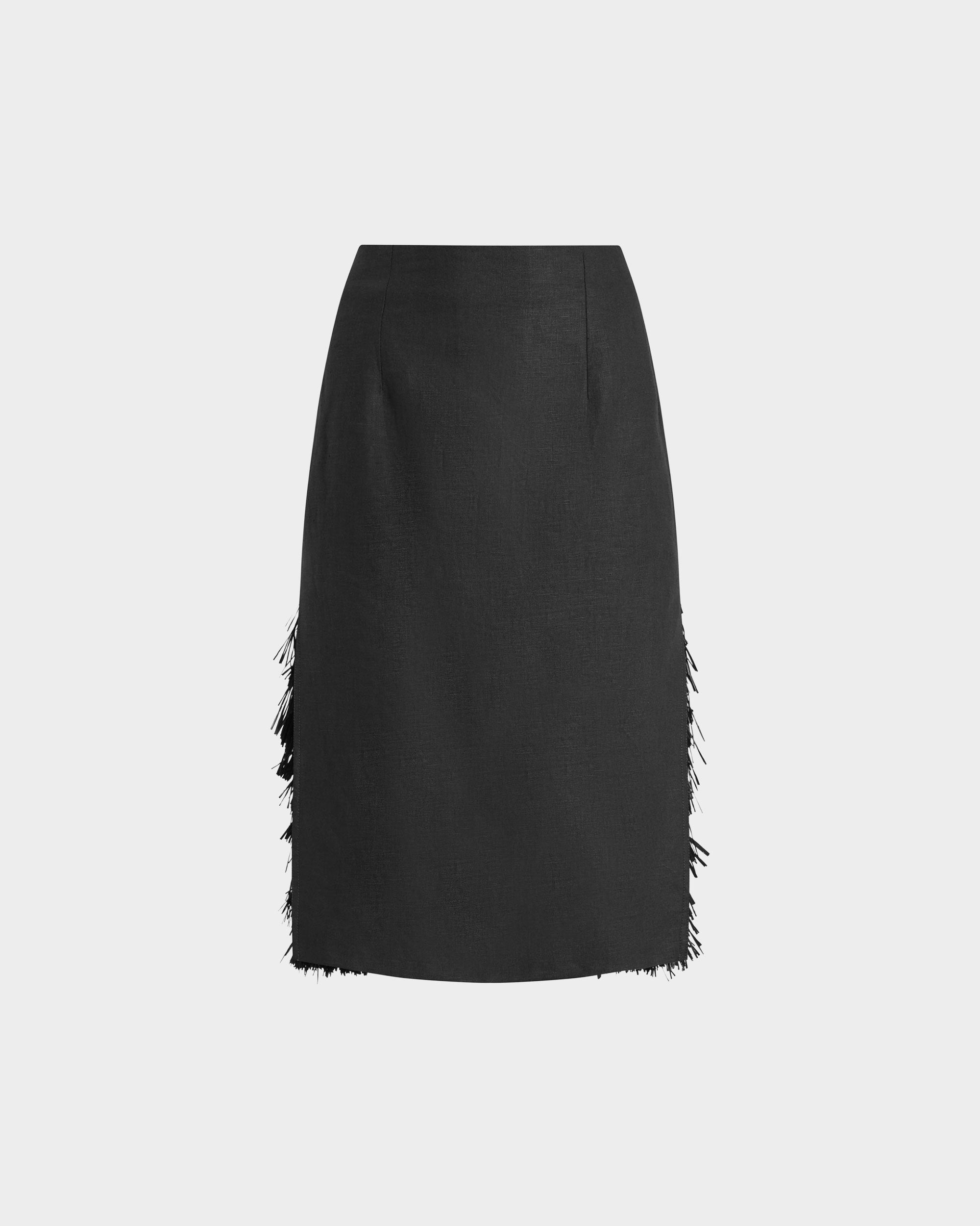 The Dafne Midi Skirt is cut from lightweight linen and features a subtle A-line silhouette. Textured raffia panels at the sides add contrast and dimension to this refined, minimalist design. MORE DETAILS Designed for a slim fit. The model is 5'9.5" (176cm) and wears a UK 8. - Main: 100% Linen - Lining: 100% Polyester - Care: Specialist Dry Cleaning Only - Made in United Kingdom Style number: S-MD-136-AW25-HS-C-01