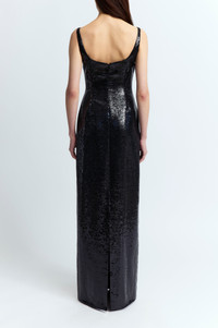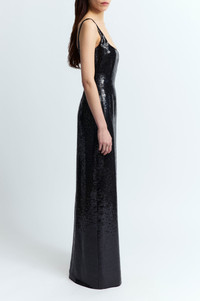 The Electra Gown in black is a signature 16Arlington silhouette with all-over sequin embellishments. Designed for a slim fit, it features a square neckline with thin shoulder straps and falls to the floor for an elongated, refined look. MORE DETAILS Designed for a slim fit. The model is 5'9.5" (176cm) and wears a UK 8 - Composition: 100% Polyester - Care: Specialist Dry Cleaning Only - Made in Portugal Style number: G-046-AW25-HS-C-01