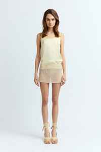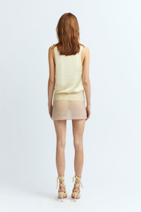 The Gilda Top is a scoop-neck, sleeveless design cut from lustrous satin in soft buttery yellow. Designed for a loose fit, it drapes effortlessly over the body and falls to the hips. The satin fabric enhances its smooth, fluid silhouette. Also available in pale blue and brown. MORE DETAILS Designed for a relaxed fit. The model is 5'11" (180cm) and wears a UK 8. - Outer: Polyester 100% - Care: Hand wash or dry clean - Made in Portugal Style number: T-381-SS25-02