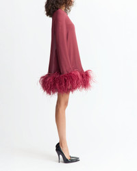 The Hodi Mini Dress is a relaxed, long-sleeved silhouette in semi-sheer georgette designed for ease and movement. Cut in a loose fit, it’s finished with feathered detailing at the wrists and hem, bringing playful volume and tactile contrast to its fluid shape. MORE DETAILS Designed for a relaxed fit. The model is 5'10" (178cm) and wears a UK 8. - Main: 100% Viscose - Trim: 100% Ostrich Feather - Care: Professional dry clean only - Made in Portugal. Style number: D-MN-635-AW25-02