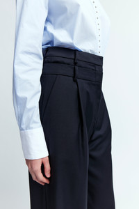 The Ivlia Trouser is a wide leg trouser that fastens with a hook and eye. It features a double waistband element to create the illusion of two trousers being worn simultaneously. They are designed to fit loosely to the body and fall below the ankles MORE DETAILS Designed for a regular fit. The model is 5'10.5" (178cm) and wears a UK 8. - Outer: 60% Polyester 23% Virgin Wool 16% Viscose 1% Elastane - Contrast: 100% Polyester - Care: Machine wash or Dry clean - Made in Portugal Style number: TR-100-SS25-1