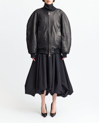 The Leazzo Jacket is an oversized bomber in vegetable-tanned leather with a relaxed, voluminous shape. It features internal wadding, a ribbed cotton collar, cuffs and hem, and a branded 16Arlington zip through the front, adding a sharp accent to the clean silhouette. MORE DETAILS Designed for an oversized fit. The model is 5'11" (180cm) and wears a UK 8 - Main: 100% Real Leather - Care: Specialist dry cleaning only - Made in Great Britain Style number: J-126-AW25-01