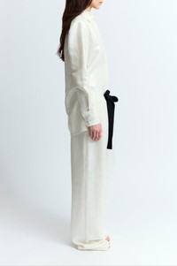 The Marley Shirt in white is a relaxed pyjama-style silhouette, cut from lightweight linen with sequin embellishment throughout. It features a contrast linen collar and cuffs, a concealed button closure, and pleats at the centre back. Wear with matching Ima trousers for a complete look. MORE DETAILS Designed for a relaxed fit. The model is 5'9.5" (176cm) and wears a UK 8. - Composition: Main: 100% Polyester, Contrast: 100% Linen - Care: Specialist Dry Cleaning Only - Made in Portugal Style number: T-307-AW25-HS-C-02