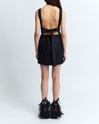 The Nia Mini Dress is crafted from lightweight linen in a slim shift silhouette. It features a boat neckline and an open back with ribbons that tie at the center. Finished with contrast stitch borders and hidden side pockets at the hips for a functional touch. MORE DETAILS Designed for a slim fit. The model is 5'9.5" (176cm) and wears a UK 8. - Composition: 100% Linen - Care: Hand Wash or Dry Clean. - Made in United Kingdom. Style number: D-MN-615-AW25-HS-C-01