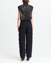 The Ovica Top is a high-neck, sleeveless design crafted from textured sequin for a tactile, light-catching finish. It features a subtle cap sleeve that softens the shoulder line, creating a clean yet sculptural silhouette. MORE DETAILS Designed for a regular fit. The model is 5'11" (180cm) and wears a UK 8. - Main: 100% Polyester - Lining: 100% Recycled Polyester - Care: Professional dry clean only - Made in Portugal. Style number: T-396-AW25-01