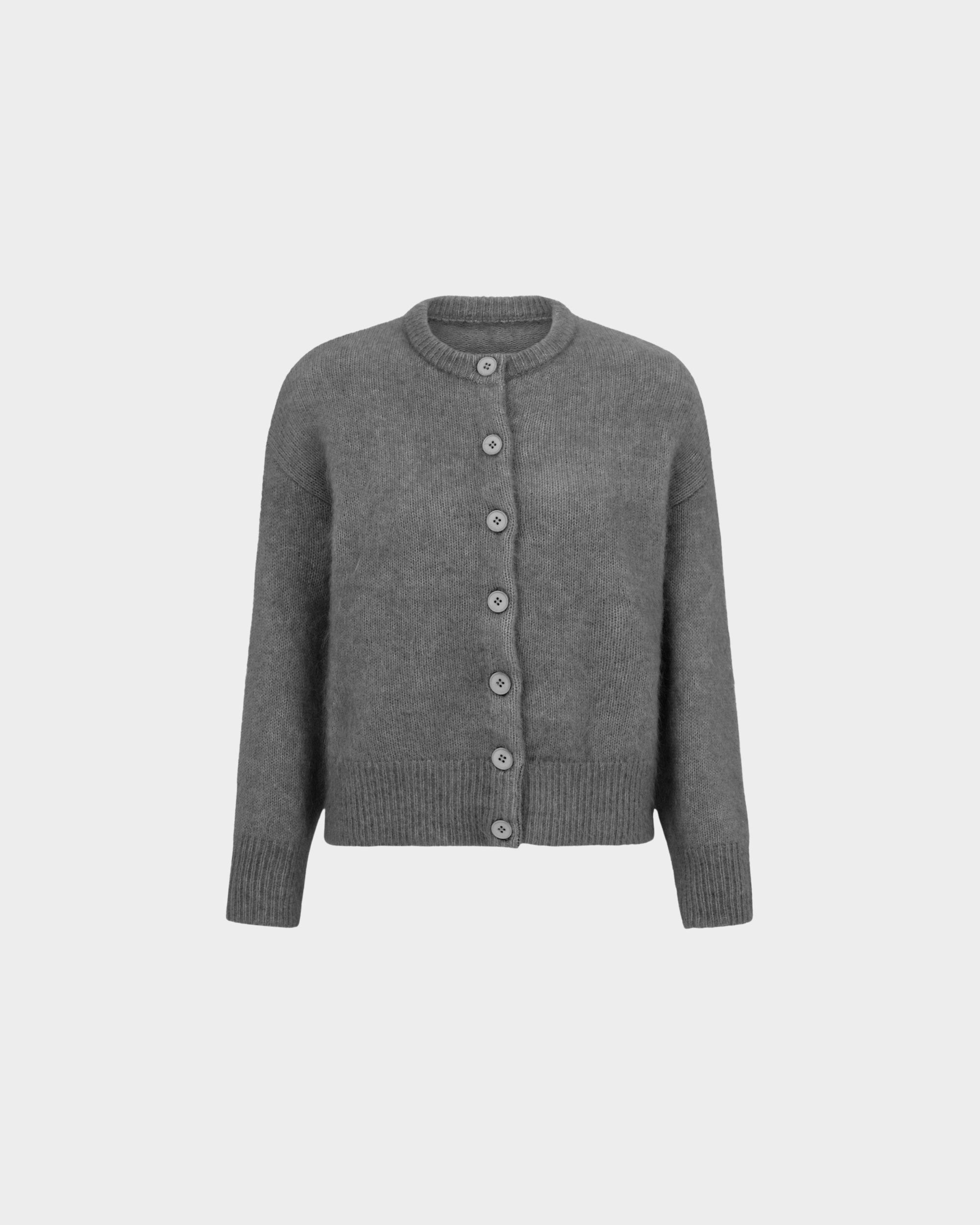 The Sephia Cardigan is a soft, fluffy mohair blend knit designed for warmth, comfort, and subtle texture. Cut in a gently relaxed shape, it features ribbed detailing at the neckline, cuffs, and hem to add structure and contrast to the plush finish. Finished with front buttons, it's an easy layering piece that brings softness and ease to everyday dressing. MORE DETAILS Designed for an oversized fit. The model is 5'11" (180cm) and wears a S. - Composition: 78% Alpaca 19% Nylon 3% Spandex - Care: Hand wash or dry clean - Made in China. Style number: K-112-AW25-02