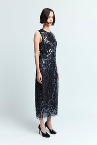 The Tovia Midi Dress features grey paillette embellishments throughout and has a scoop neck. It falls above the ankles and is designed to fit loosely to the body. It can also be fastened up at the back with a zip. This dress is also available in red MORE DETAILS Designed for a regular fit. The model is 5'10.5" (178cm) and wears a UK 8. - Outer: 100% Polyester - Care: Hand wash only - Made in Portugal Style number: D-529-SS25-1