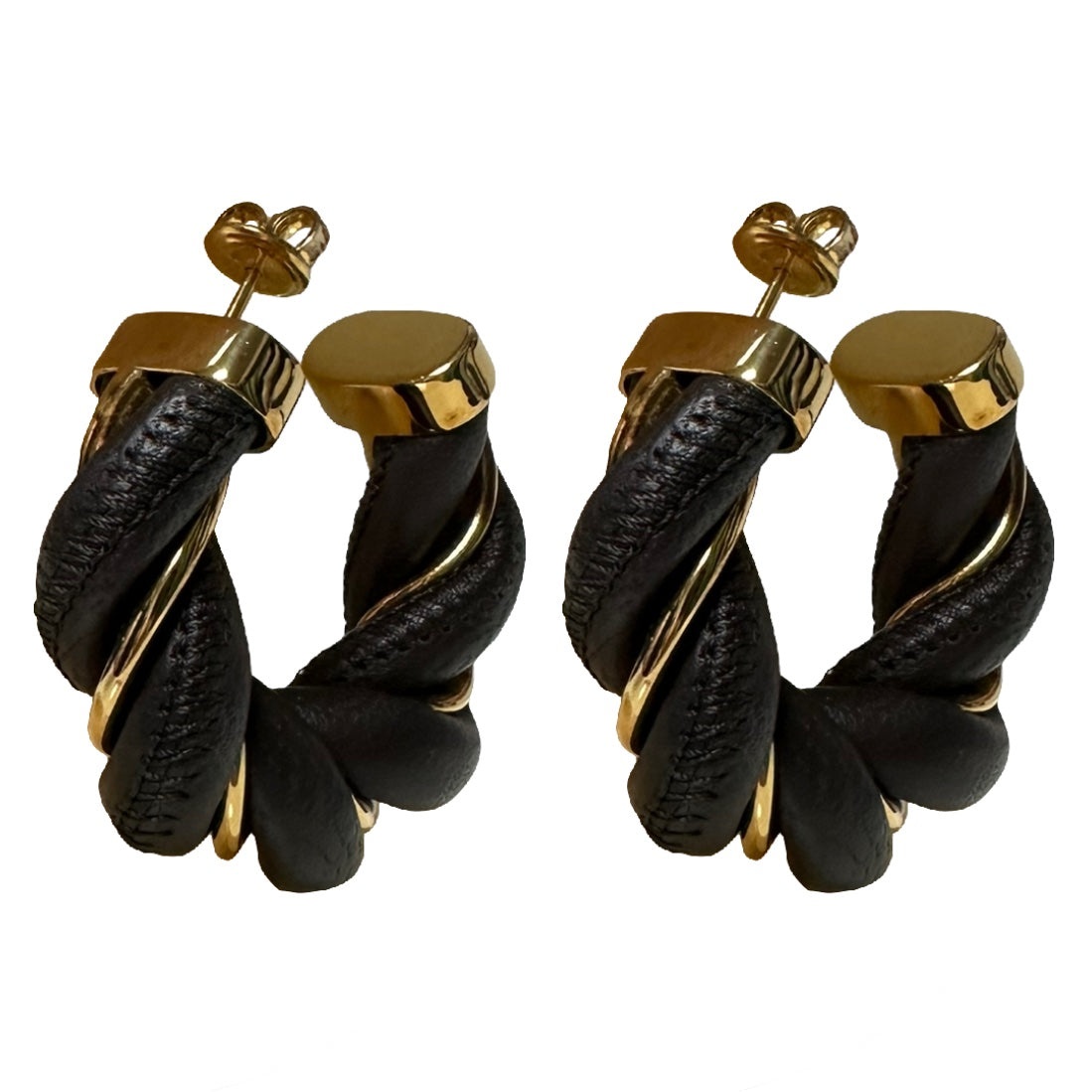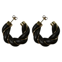 BOTTEGA VENETA Fall Winter 2020 Twist Gold-plated and Leather Hoop Earrings